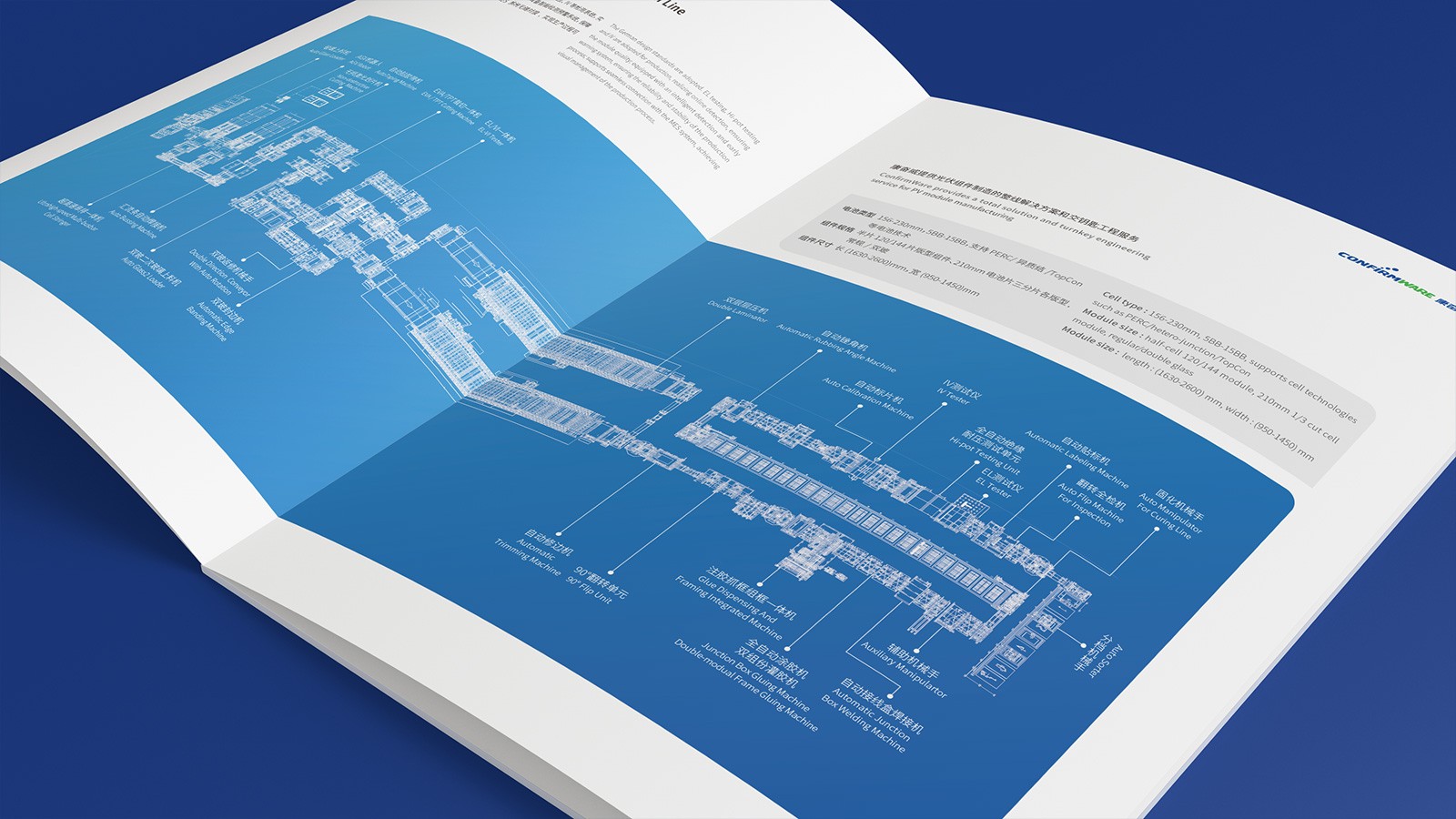 重點展示公司業(yè)務,文案的準確性,設計的展現(xiàn)等。整本宣傳冊的色調為藍色,綠色點綴,與LOGO顏色相呼應;產品畫面為線條展示,整體流暢簡潔,給人清爽的感受。