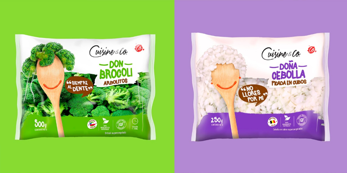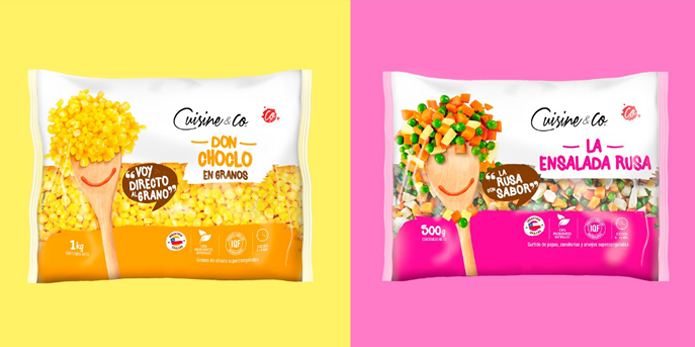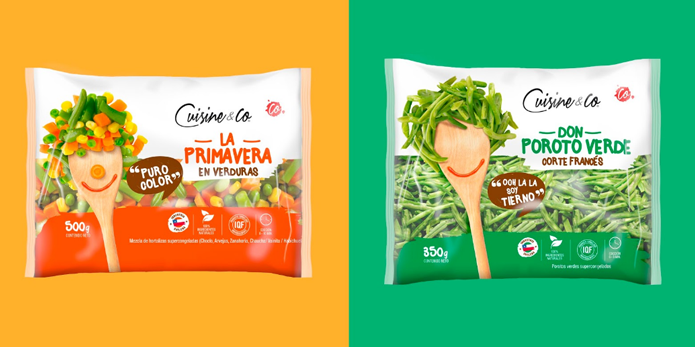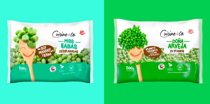 這款冷凍蔬菜的包裝設計中使用了智利廚房中非常典型的木勺,將簡單并極具生活化的木勺與蔬菜進行巧妙的結合,以創造有趣的角色來塑造每種蔬菜,使每種蔬菜都有了一個可愛的形象,并賦予蔬菜們不同的個性。