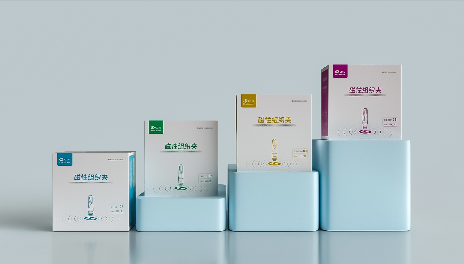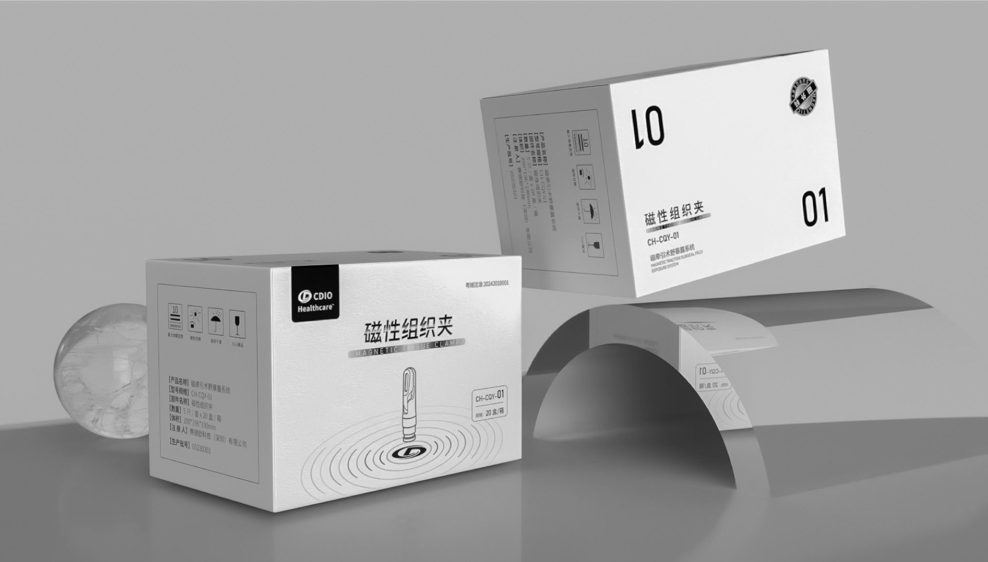 線性插畫:磁性組織夾以線性的方式呈現,以確保主要信息清晰可見。圖像的線條簡潔、現代,與醫療領域的創新精神相平應。