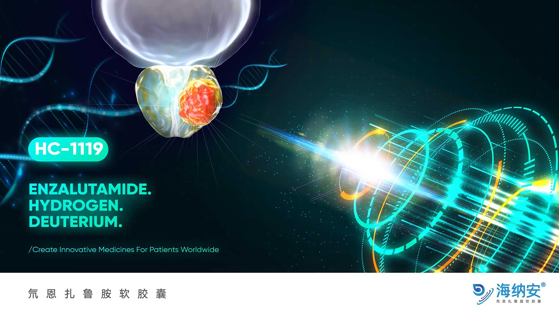 氘恩扎魯胺(HC-1119 軟膠囊)是公司自主研發(fā)的、治療轉(zhuǎn)移性去勢(shì)抵抗性前列腺癌(mCRPC)的 1 類新藥,是第二代雄激素受體(AR)拮抗劑恩扎盧胺的氘代藥物,獲得國(guó)家科技部2018 年 “重大新藥創(chuàng)制”科技專項(xiàng)支持。需求內(nèi)容:產(chǎn)品圖形商標(biāo),產(chǎn)品主kv形象,延展物料:議程/邀請(qǐng)函模版、幻燈模版、席卡、接機(jī)牌,slogan和Key message建議方案;設(shè)計(jì)要求:1.符合行業(yè)調(diào)性,顯現(xiàn)創(chuàng)新藥屬性,匹配品牌定位,具有辨識(shí)度,2.須為原創(chuàng)設(shè)計(jì),圖形商標(biāo)能順利完成商標(biāo)注冊(cè),3.具有實(shí)用性及延展性(包括設(shè)計(jì)、印刷、展陳等多場(chǎng)景),4.滿足合規(guī)要求,符合社會(huì)公序良俗。