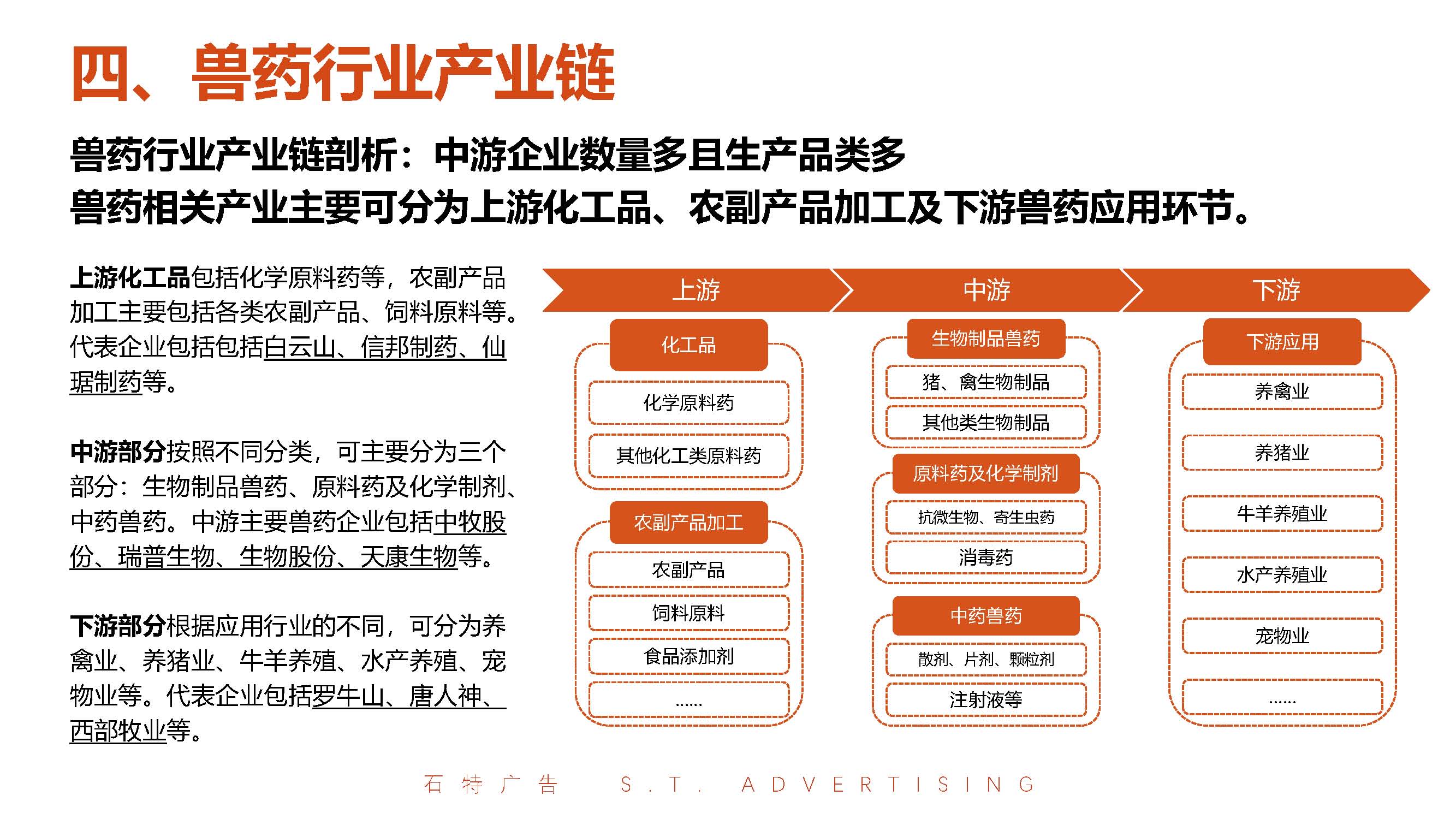 我們從企業(yè)定位、企業(yè)文化、現(xiàn)有產(chǎn)品等方面出發(fā)分析了瑞普生物、海利、華畜等獸藥代表性企業(yè):瑞普生物屬于大而全,無論是生產(chǎn)實力、技術水平、經(jīng)營范圍、銷售區(qū)域、還是品牌影響力,都具有絕對的市場話語權;海利生物屬于精而深,通過細分市場,精準定位為獸用生物制品領域,通過全產(chǎn)業(yè)鏈一體化能力做到一厘米寬,一公里深,也收獲了巨大的成功,并站穩(wěn)區(qū)域市場;華畜以更正規(guī)更低價作為品牌定位,線上線下整合,依托電商成功爆發(fā),打造了互聯(lián)網(wǎng)品牌陣地,實現(xiàn)了聲量銷量的雙豐收。