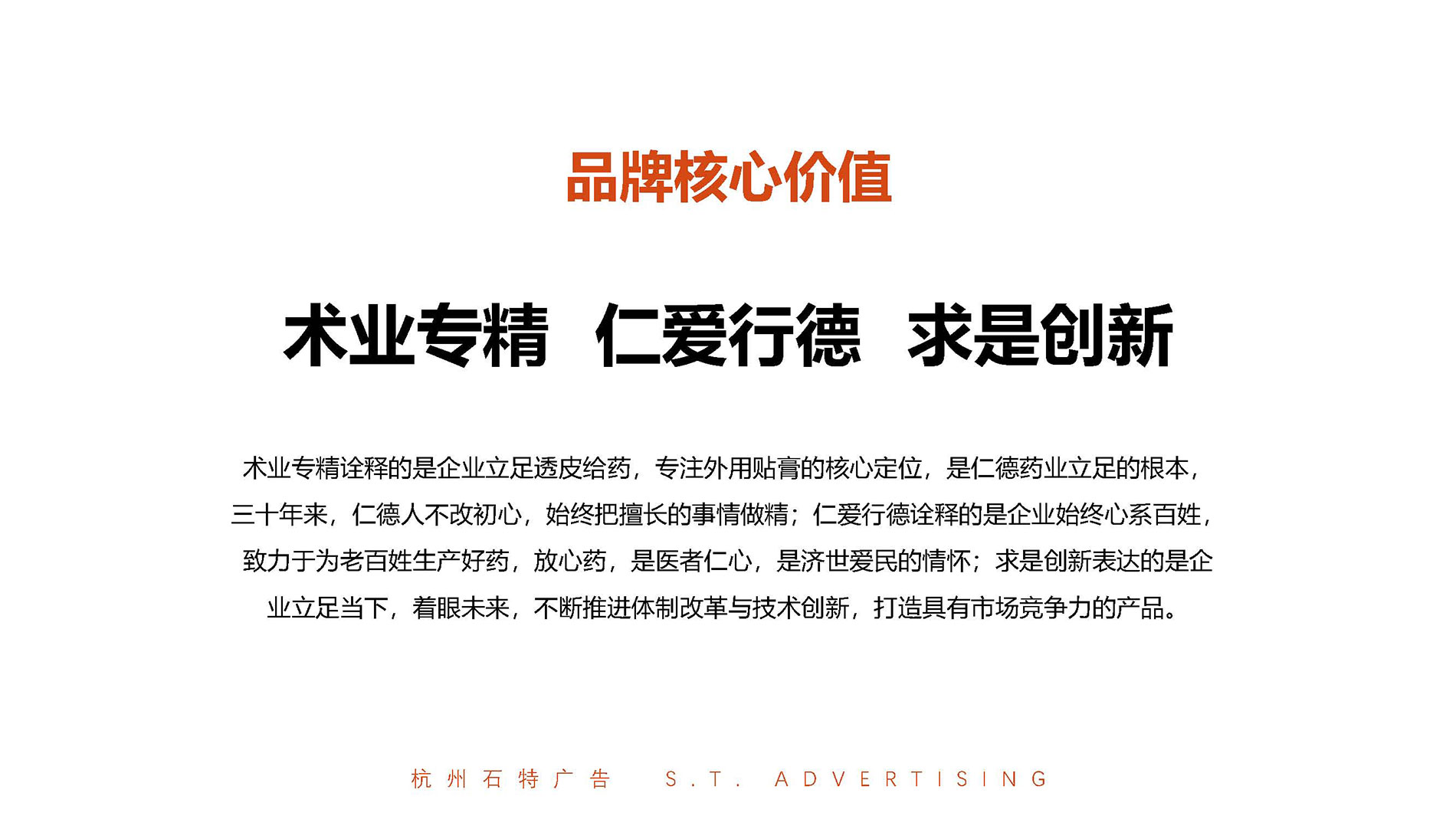 仁德藥業一直以經皮給藥立足,是杭州乃至全國較大規模的外用透皮貼劑企業,企業成立三十年之際,仁德開工建設年產5億貼中西藥透皮制劑智能工廠并籌備上市。在大力推動市場布局的同時,原有的品牌定位不精準;品牌理念與價值不成體系;品牌形象陳舊、不規范;產品系列待規劃,包裝形態落后,亟待自上而下為品牌打好根基,提高產品市場行銷力。
