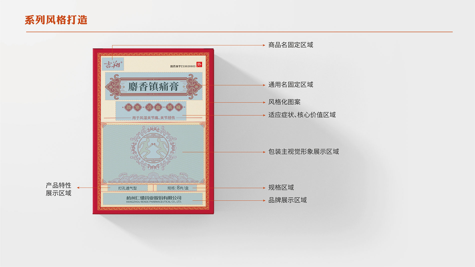 品牌形象與視覺:形象設計階段logo以及VIS系統升級遵循守正創新的原則,保留了企業“研習經典,傳承古方”的核心訴求,同時以更開放、包容的設計手段迎合銷售范圍的擴大、市場群體的擴充,使仁德品牌形象更加現代、包容,同時視覺上得到了美感、底蘊的全面提升;