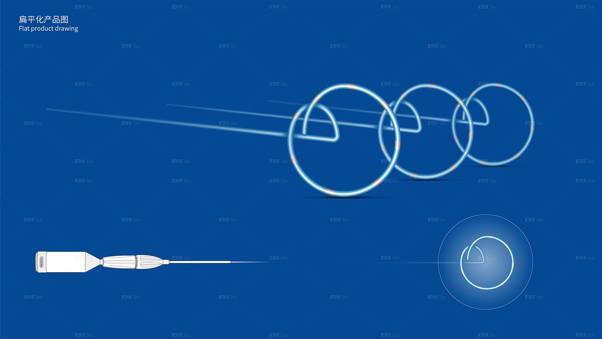 可調控型導管鞘產品包裝設計之初有很多難點,比如產品體積大,產品實物外觀不好展示體現,產品長包裝外盒就需很長,要考慮到打開,運輸及外包上的畫面及主要信息的體現方式和順序位置等;石特團隊再經過詳細調研和了解后,很好的完成了該方案的設計,獲得了客戶高度認可與贊賞。