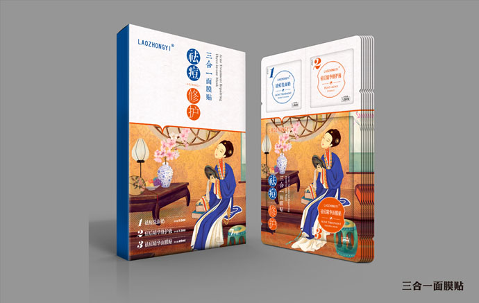 祛痘兩個字放的位置比較明顯,這樣既闡述了產(chǎn)品的功能又很快的吸引了顧客的眼球,旁邊加以小子輔助說明了產(chǎn)品的具體特性,將祛痘的功能表現(xiàn)了出來。愛美之心人皆有之,包裝盒上是一個古代女子坐在閨房內照鏡子,給人一種古典美。宮廷多秘方,以古代美人為畫面可以使人聯(lián)想更多。祛痘洗面奶、祛痘修護液、祛痘修護霜瓶子材料包裝設計上采用瓷感白,給人一種白凈清爽的感覺仿佛如美人的臉一樣白皙干凈,同時瓶子設計的很精致給人一種高貴典雅的美感。