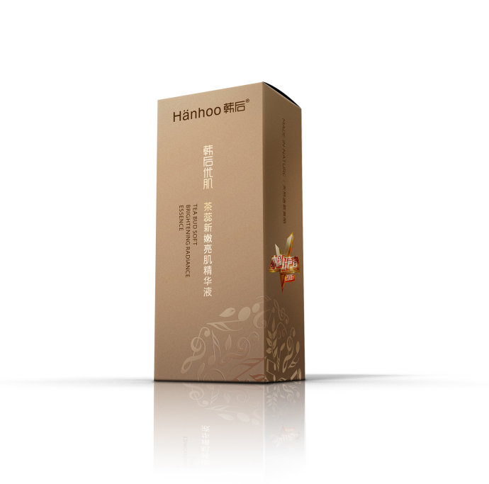 包裝采用及簡的風格,運用灰色調,顯得典雅而高貴,產品盒上還配有精細的音樂條紋讓人感到肌膚像音樂一樣有活力充滿彈性。同時這中簡約的包裝風格給人傳遞一種環保時尚的理念。韓后茶蕊這一系列護膚品有嫩白霜、嫩白液、精華液,都采用相同的顏色外形包裝只是包裝盒上的字不同從而區別不同的產品,這樣給人一種整體性。