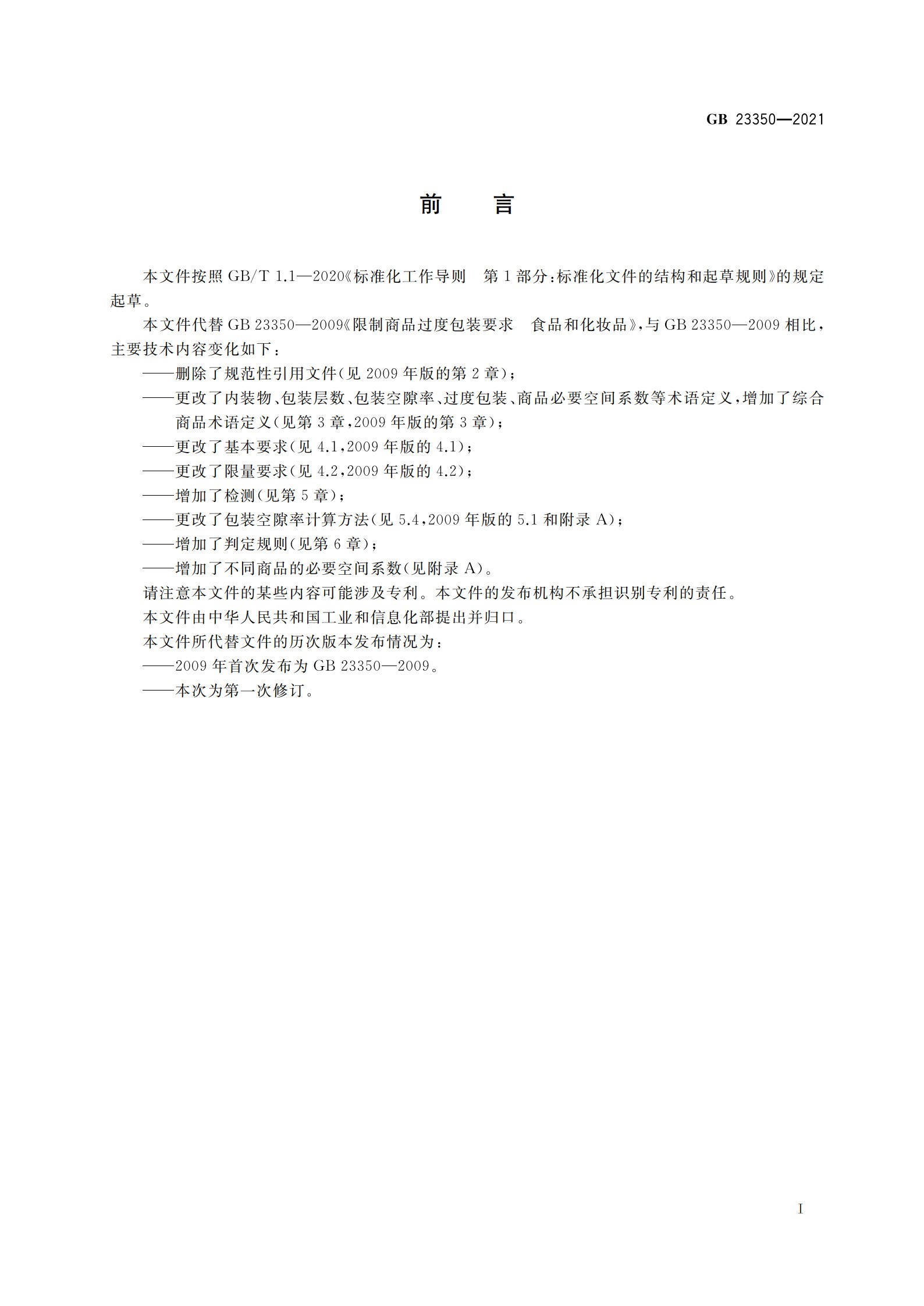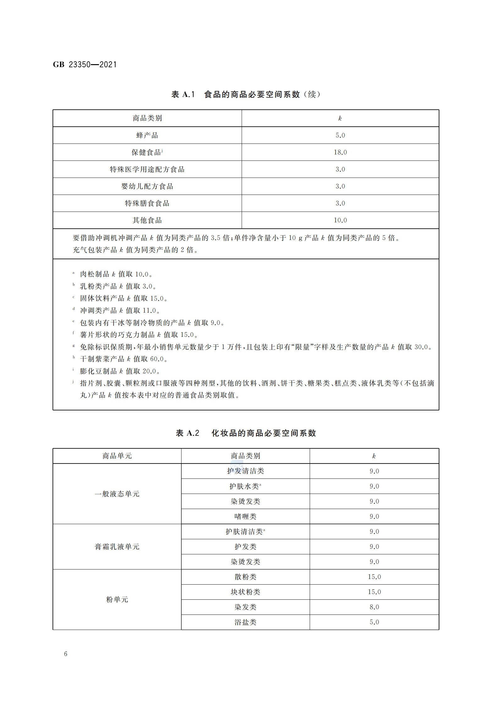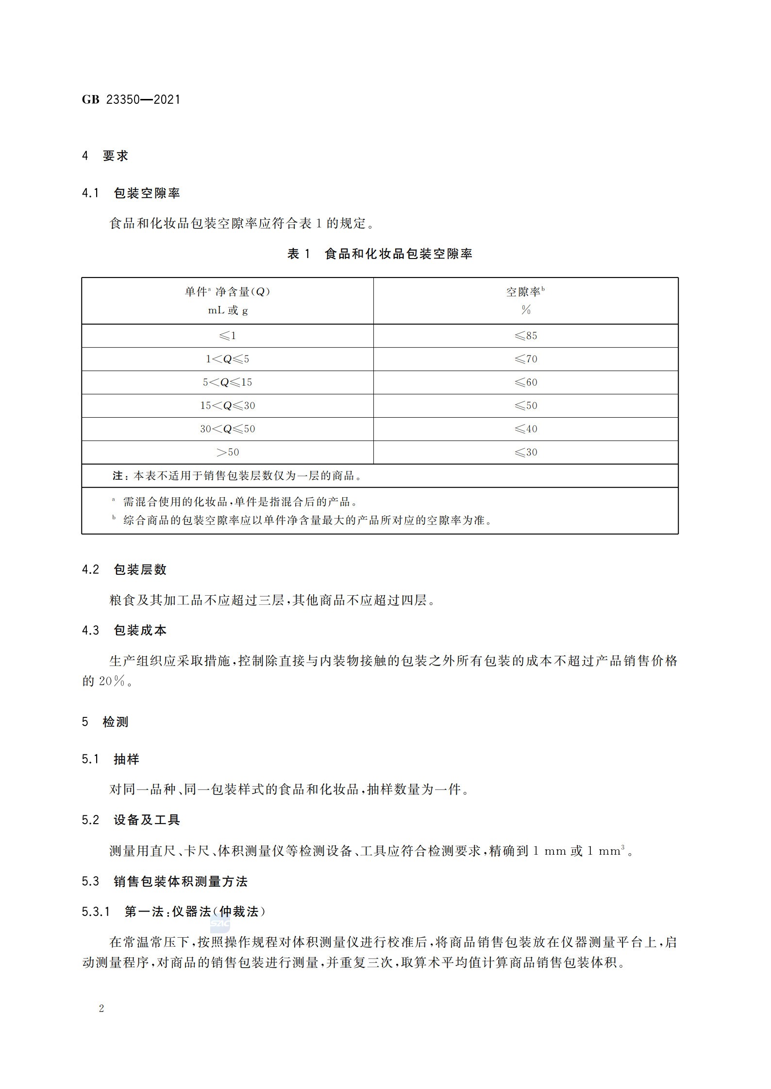 《限制商品過度包裝要求 食品和化妝品》(GB 23350—2021)