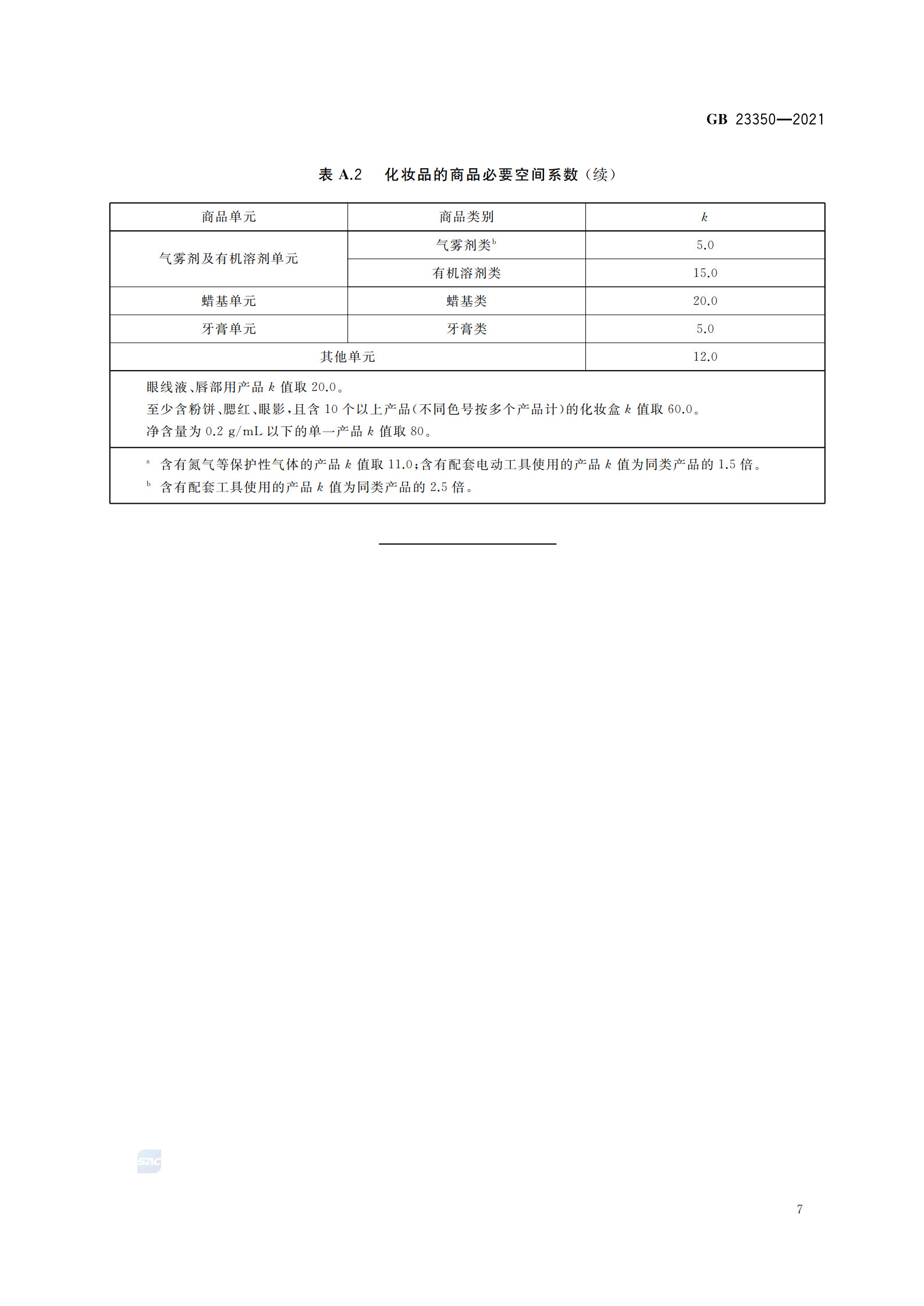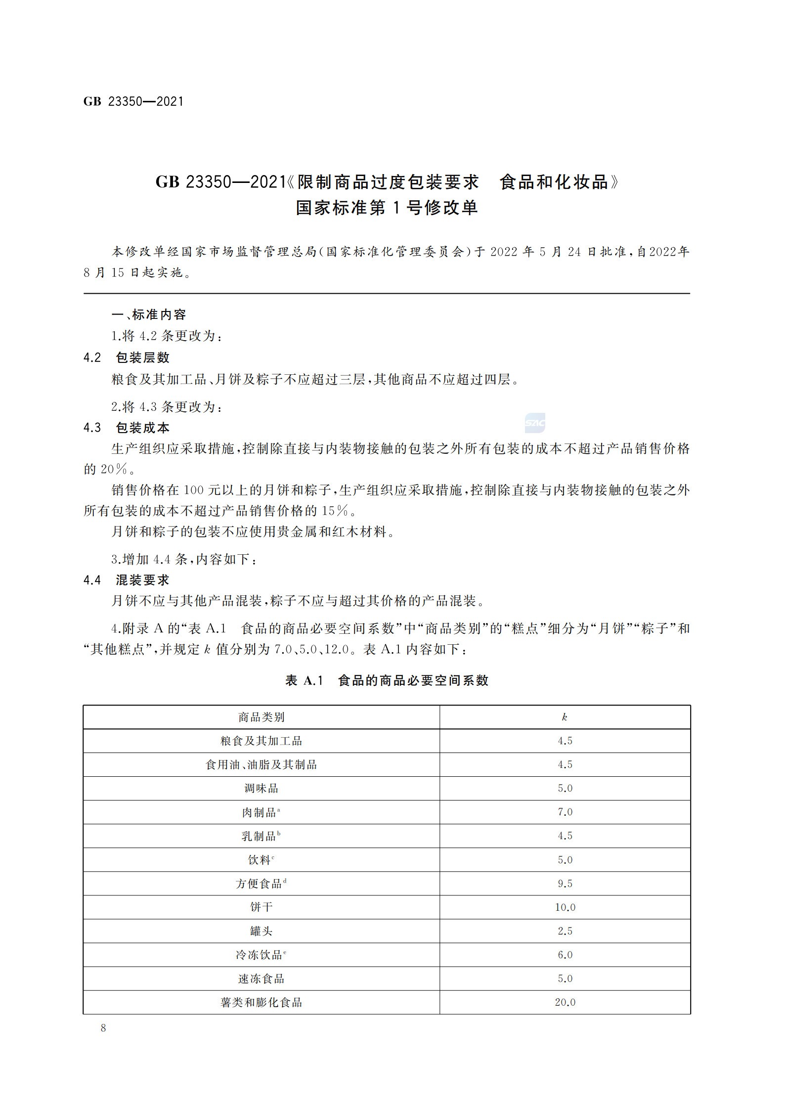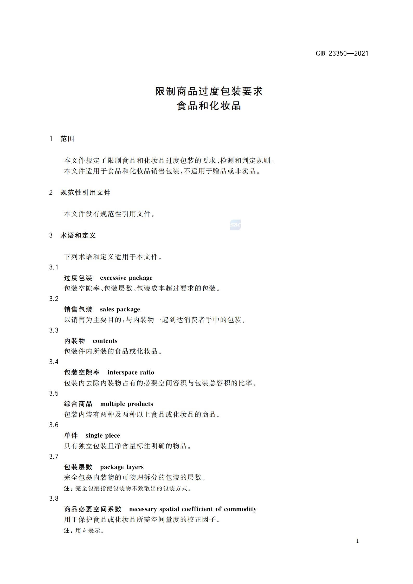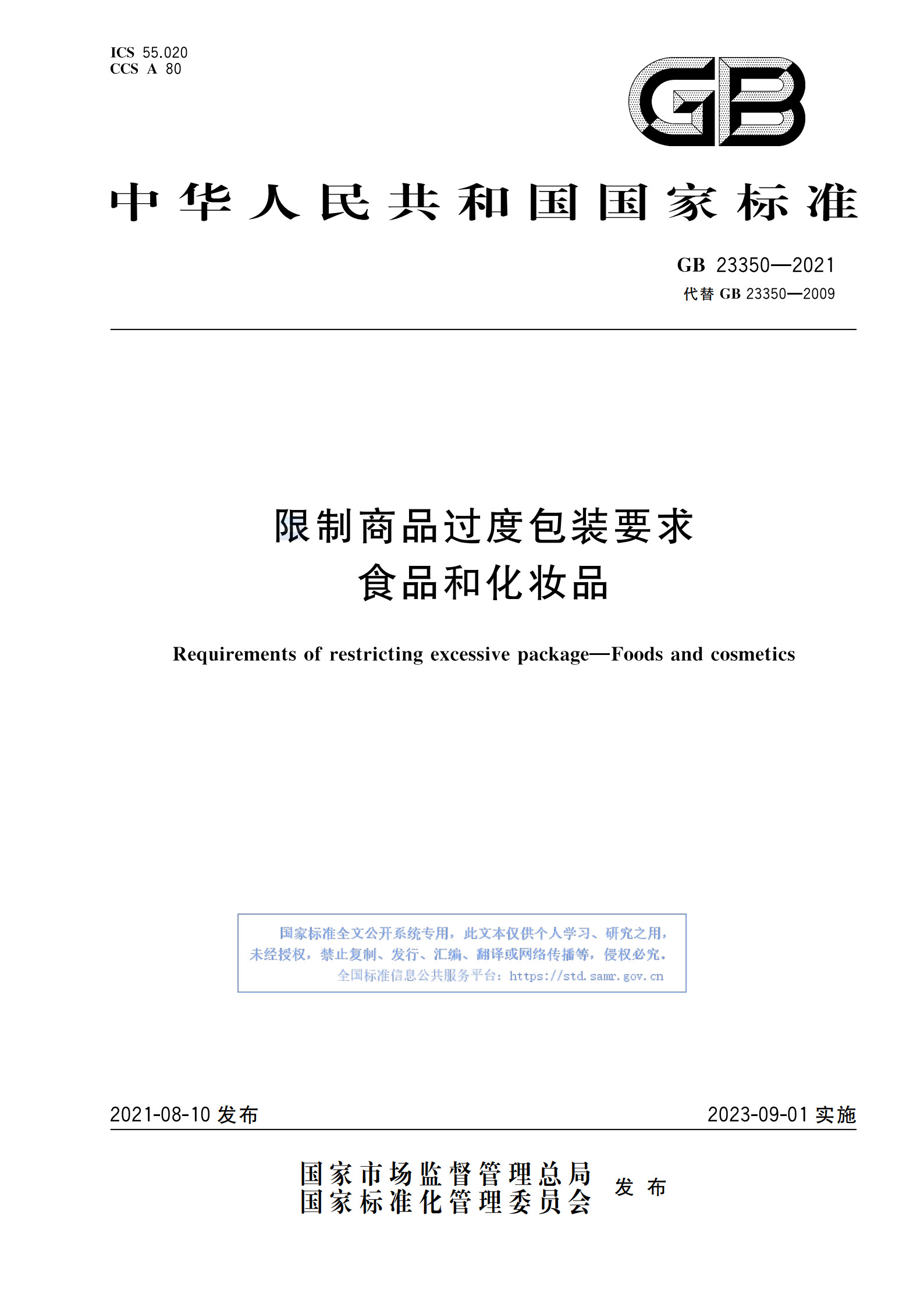 《限制商品過度包裝要求 食品和化妝品》(GB 23350—2021)